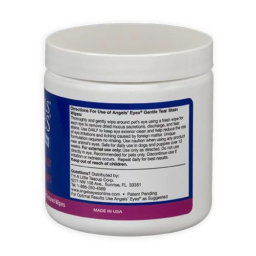 Angels’Eyes Gentle Tear Stain wipes are recommended to help remove dried mucus secretions, discharge, and tear stains. Use daily to keep eye exterior clean and help reduce the risk of eye irritations and itching caused by foreign matter, our unique formulation requires no rinsing.