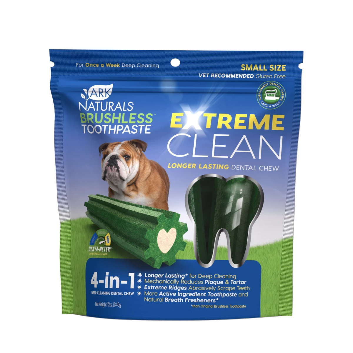 These once a week, longer lasting chews abrasively scraping plaque and tartar from hard to reach places using deep ridges. A more robust toothpaste center and a higher dose of natural breath fresheners than our original Brushless Toothpaste chews also means more polishing and freshening action for your pup!