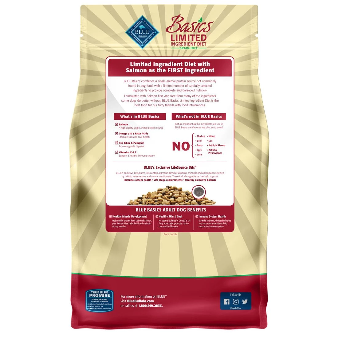 Blue Basics Limited Ingredient Diet, Grain Free Natural Adult Dry Food with Salmon and Potato Recipe, 800133, 4 LB Bag