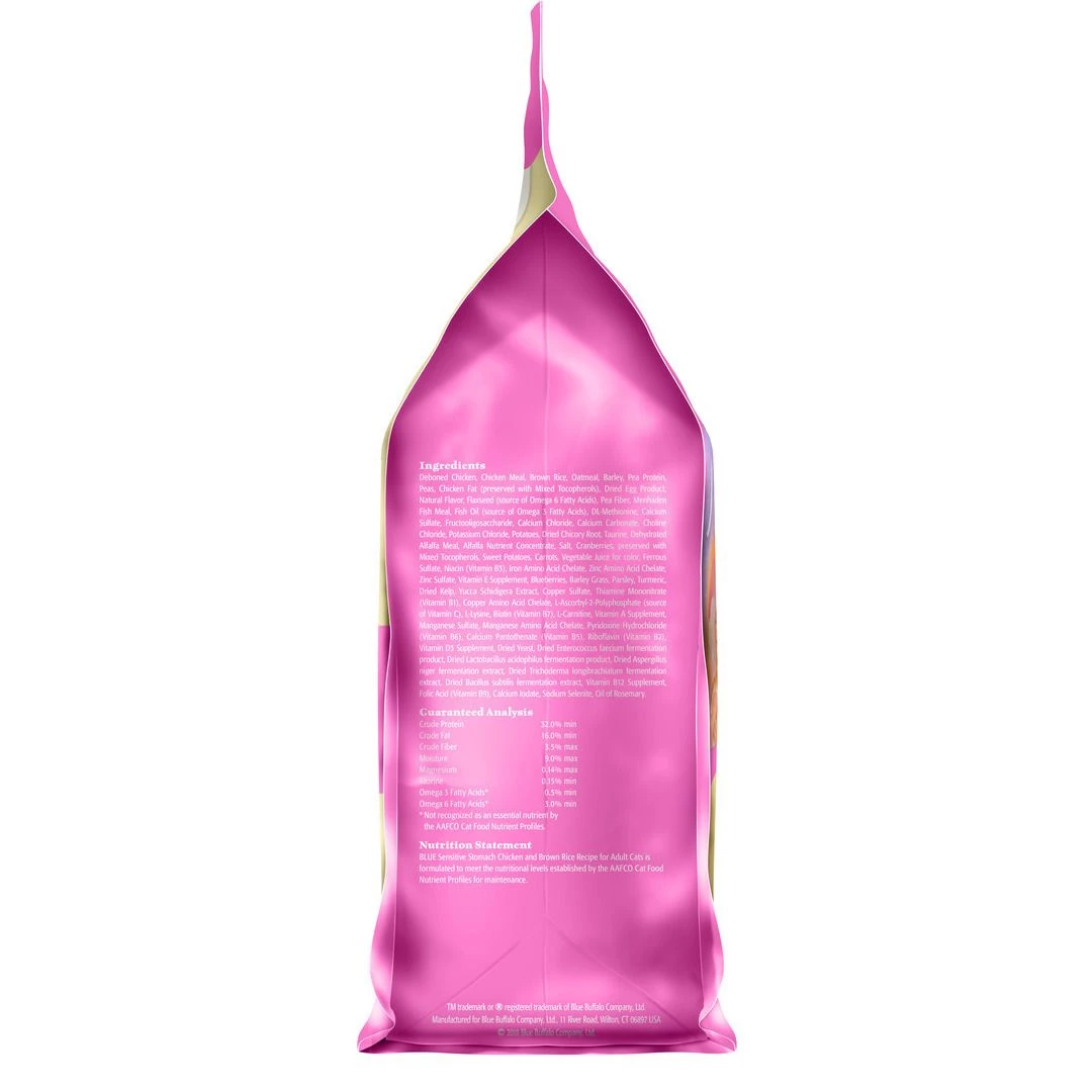 Blue Sensitive Stomach Natural Adult Dry Cat Food with Chicken & Brown Rice Recipe, 800361, 7 LB Bag