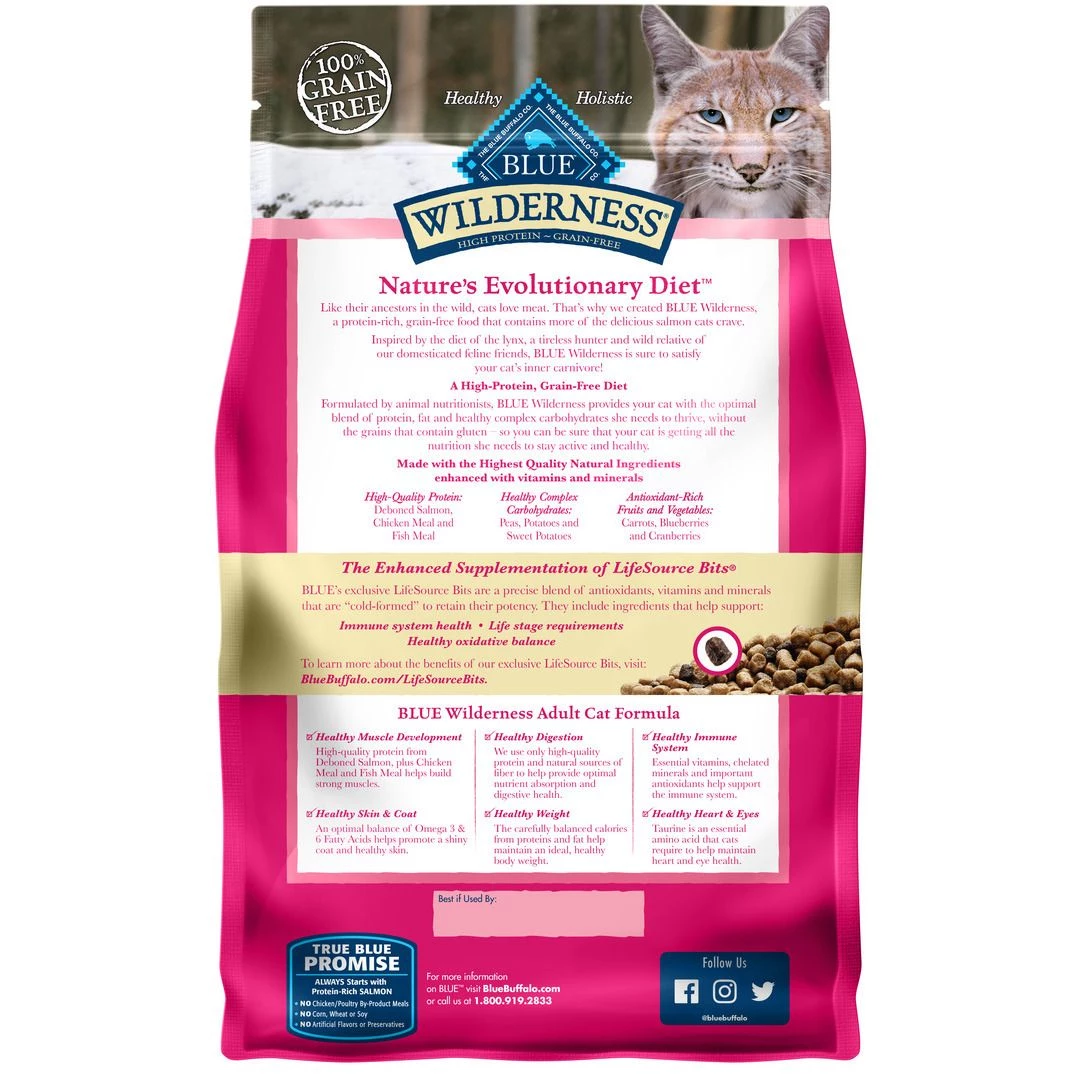Blue Wilderness High Protein, Natural Adult Dry Cat Food with Salmon, 800285, 5 LB Bag