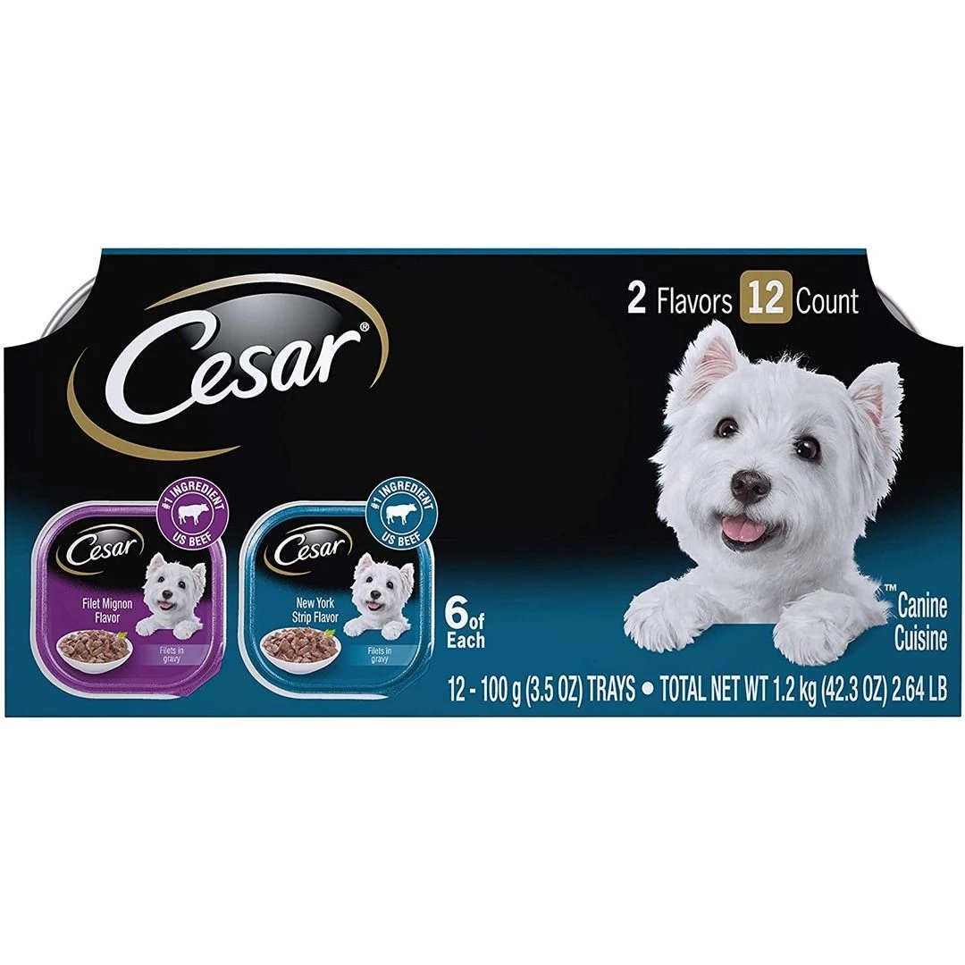 Cesar Filets In Gravy Wet Dog Food Filet Mignon & NY Strip Flavors, 10224545, 3.5 OZ Pouch