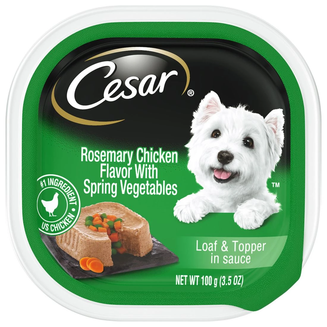 Cesar Soft Dog Food Loaf & Topper in Sauce Rosemary Chicken Flavor with Spring Vegetables, 10184450, 3.5 OZ Pouch