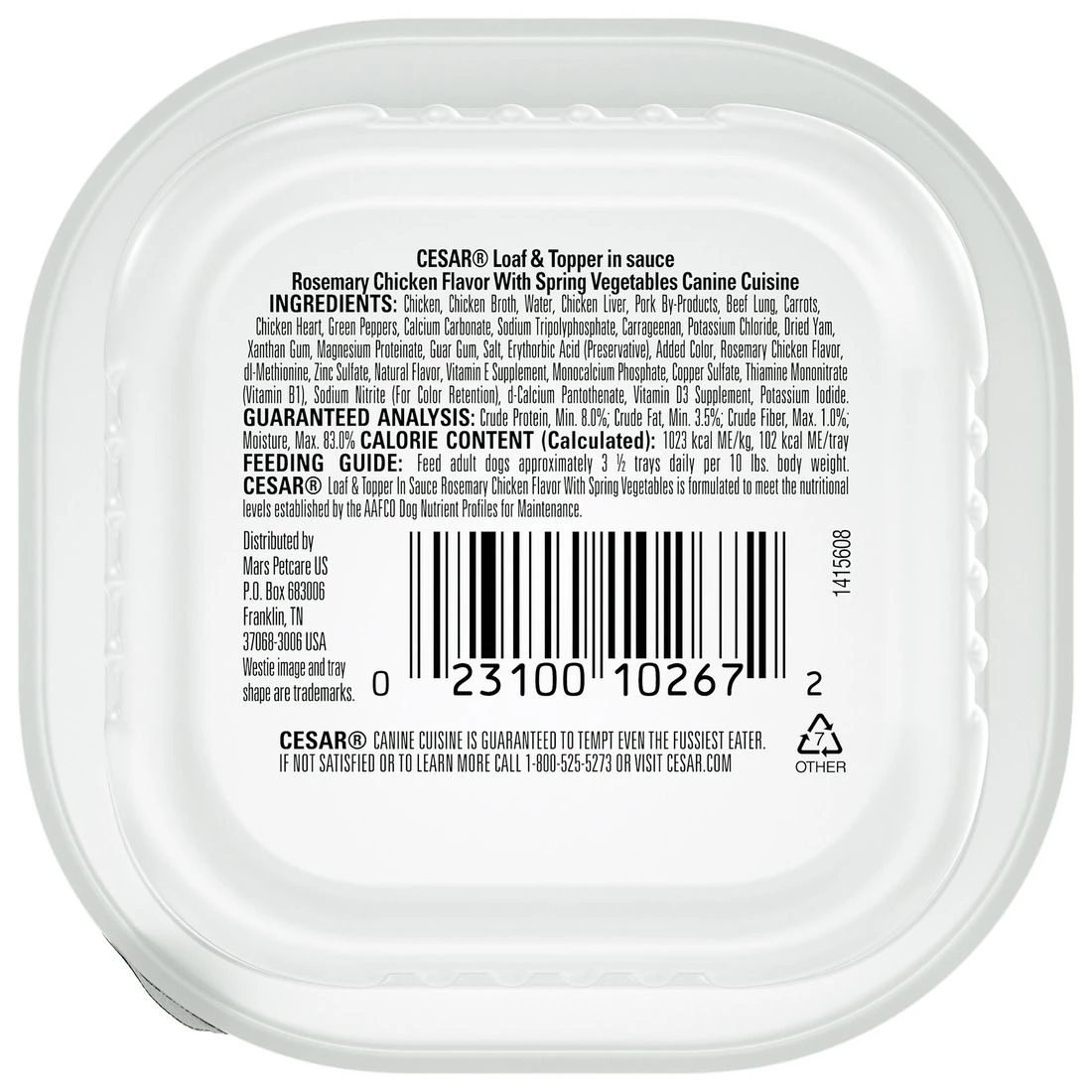 Crafted without grains and with US Chicken as the #1 ingredient. Made in the USA with the world’s finests ingredients, Cesar makes a great meal on its own or as a dog food topper mixed with dry food