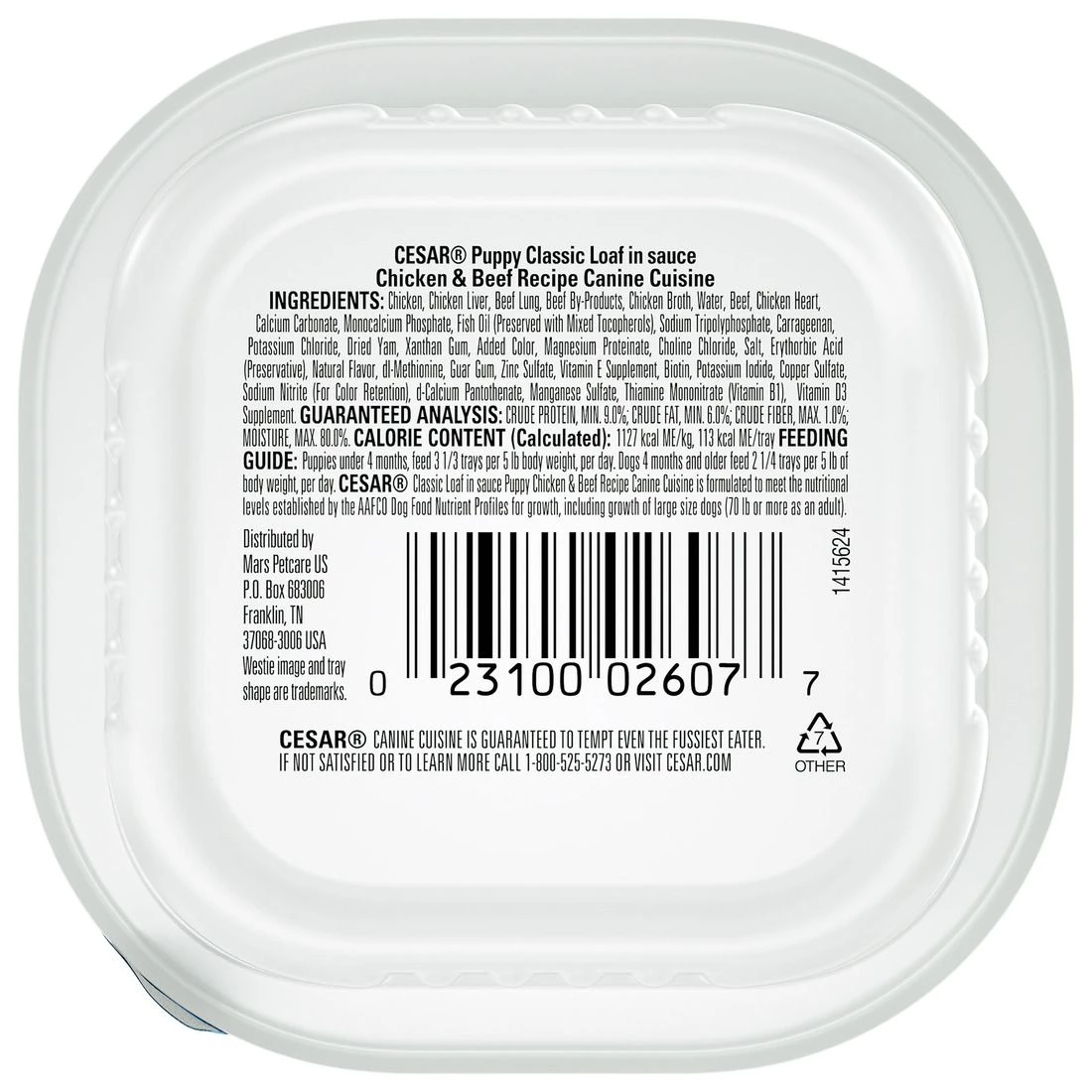 Cesar Soft Wet Dog Food Classic Loaf in sauce Chicken & Beef Recipe for Puppies, 10184476, 3.5 OZ Pouch
