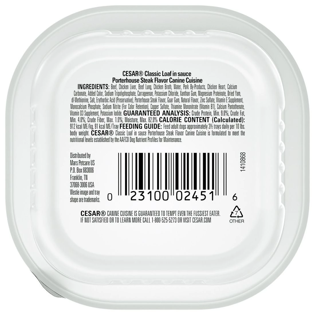 Cesar Soft Wet Dog Food Classic Loaf in Sauce Porterhouse Steak Flavor, 10179857, 3.5 OZ Pouch