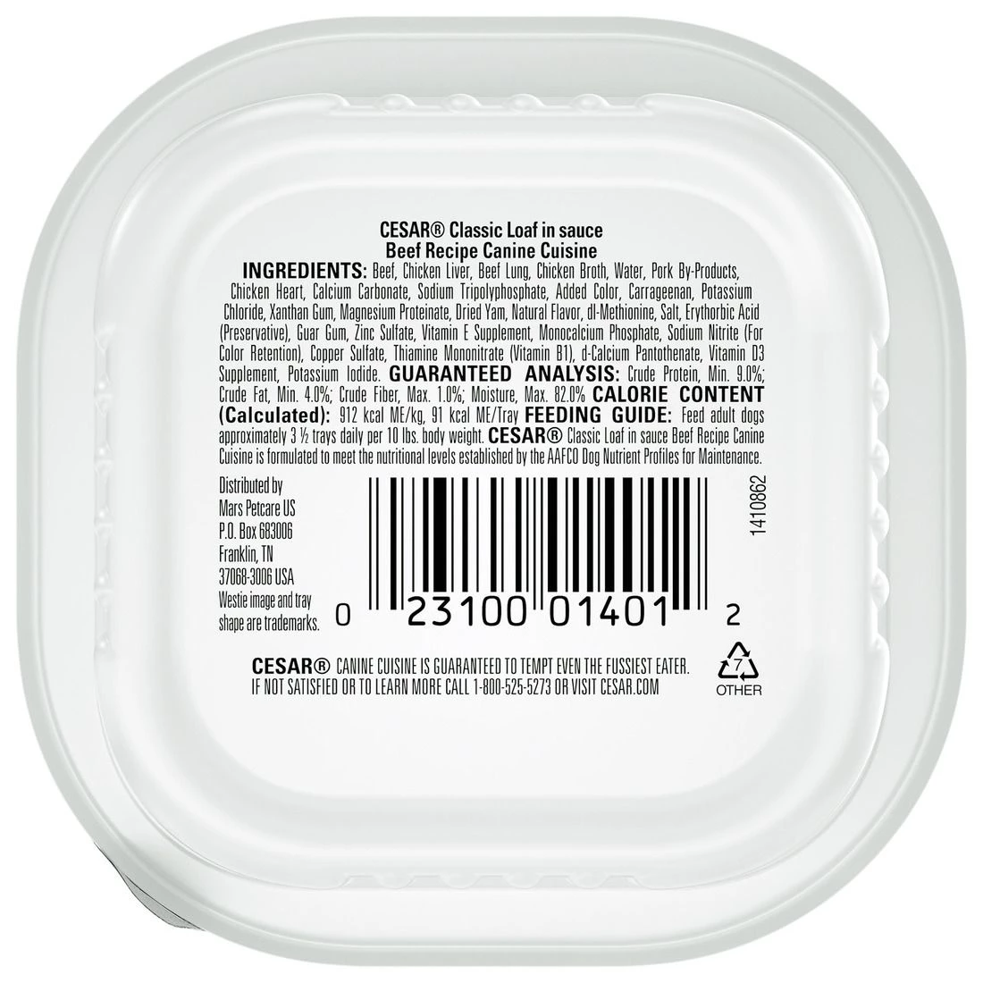 Cesar Soft Wet Dog Food Loaf in Sauce Beef Recipe, 10179847, 3.5 OZ Pouch