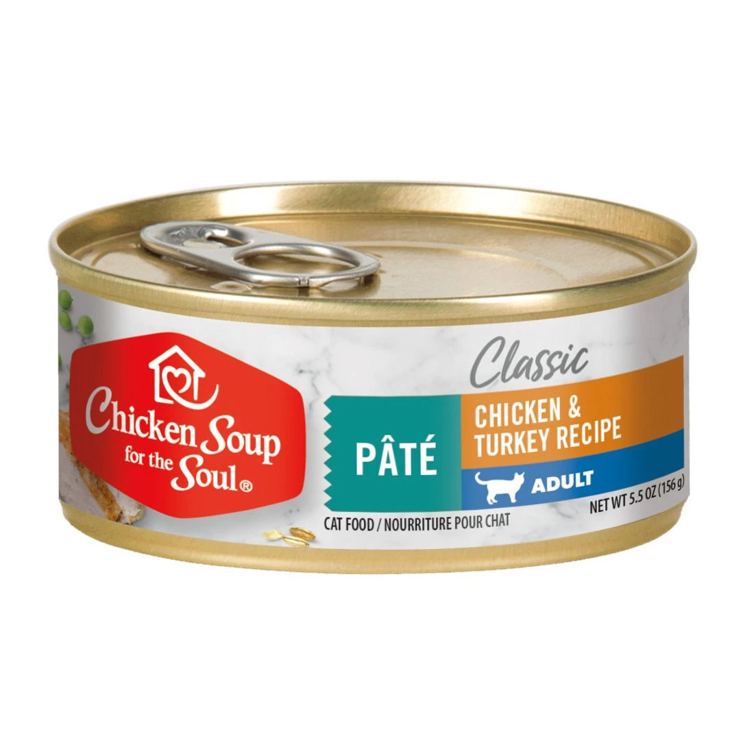 Provide your kitty with a complete and balanced diet with Chicken Soup for the Soul Adult Canned Cat Food. This recipe contains antioxidant taurine for healthy eyesight and hearing in your furry friend. It includes real chicken as the first ingredient and is blended with turkey, duck and salmon making for a taste your kitty will love. With no by-product meals, wheat, corn or soy, Chicken Soup for the Soul Adult Canned Cat Food is a healthy and safe option for your adult cat.