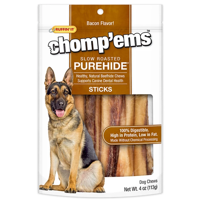 Chomp’ems Purehide Sticks – Bacon Flavor, 7N21002, 4 OZ Bag