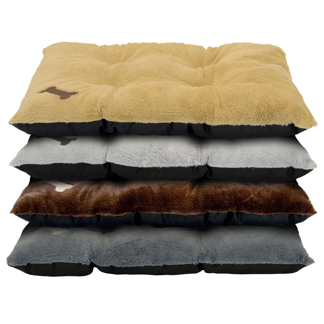- Luxurious Super Soft Plush Sleep Area. Tufted design keeps fiber in place. Decorative Bone Embroidery. Great for Dogs up to 80 lbs. Non-Skid Bottom Fabric. Easy Care, Machine Washable.