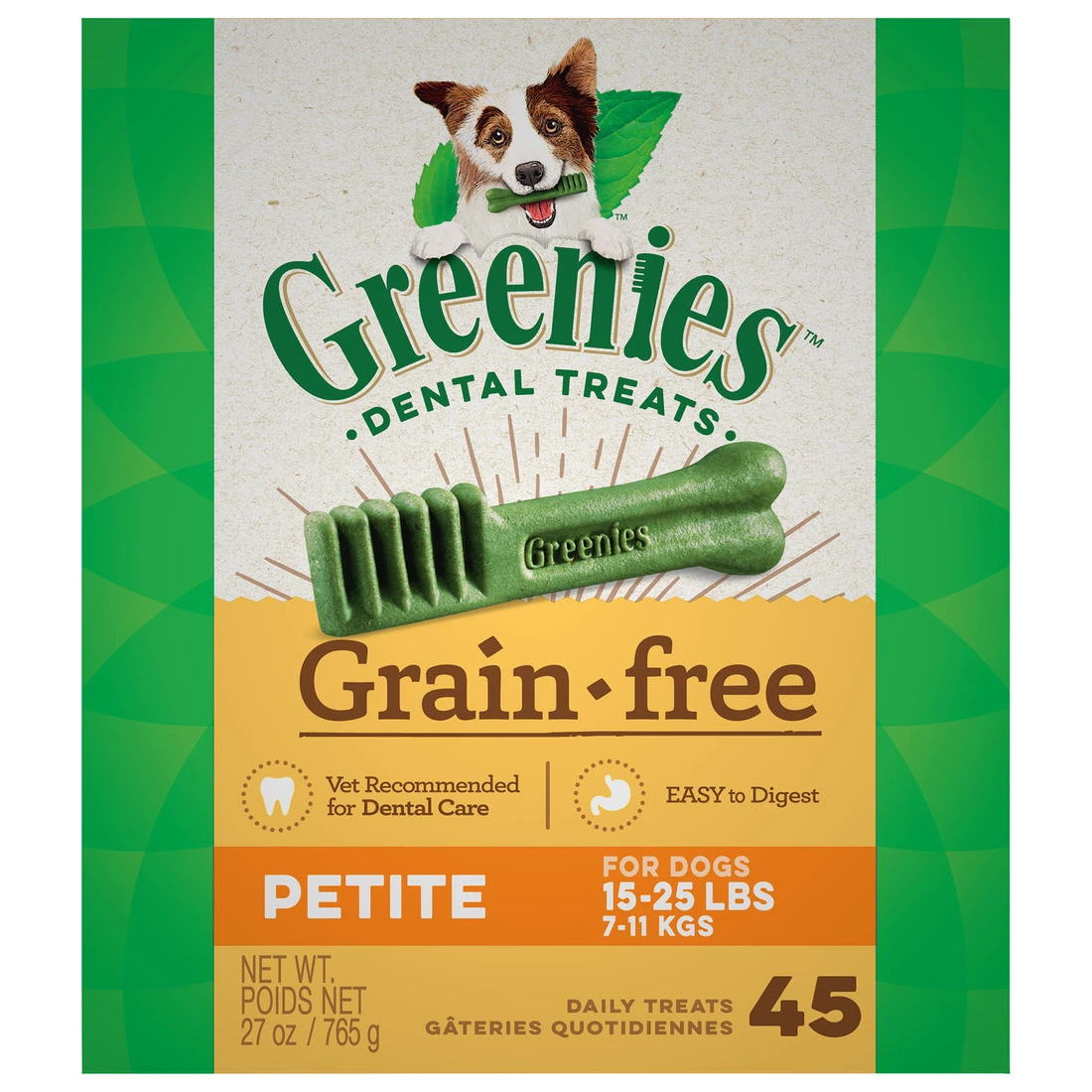 | Product Name | Greenies Grain Free Natural Dog Dental Care Dog Treats for Petite Dogs, 10122361, 27 OZ Bag |