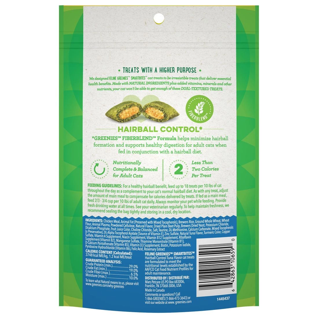 | Product Name | Greenies Hairball Control Crunchy and Soft Natural Cat Treats, Tuna Flavor, 10151765, 4.6 OZ Bag |