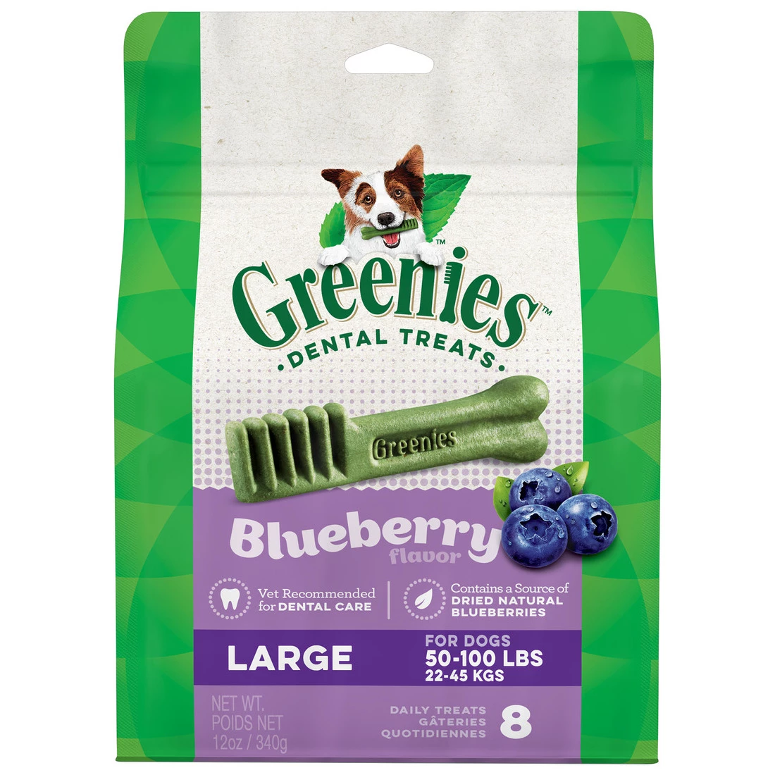 | Product Name | Greenies Natural Dog Dental Care Dog Treats Blueberry Flavor for Large Dogs, 10122450, 12 OZ Bag |