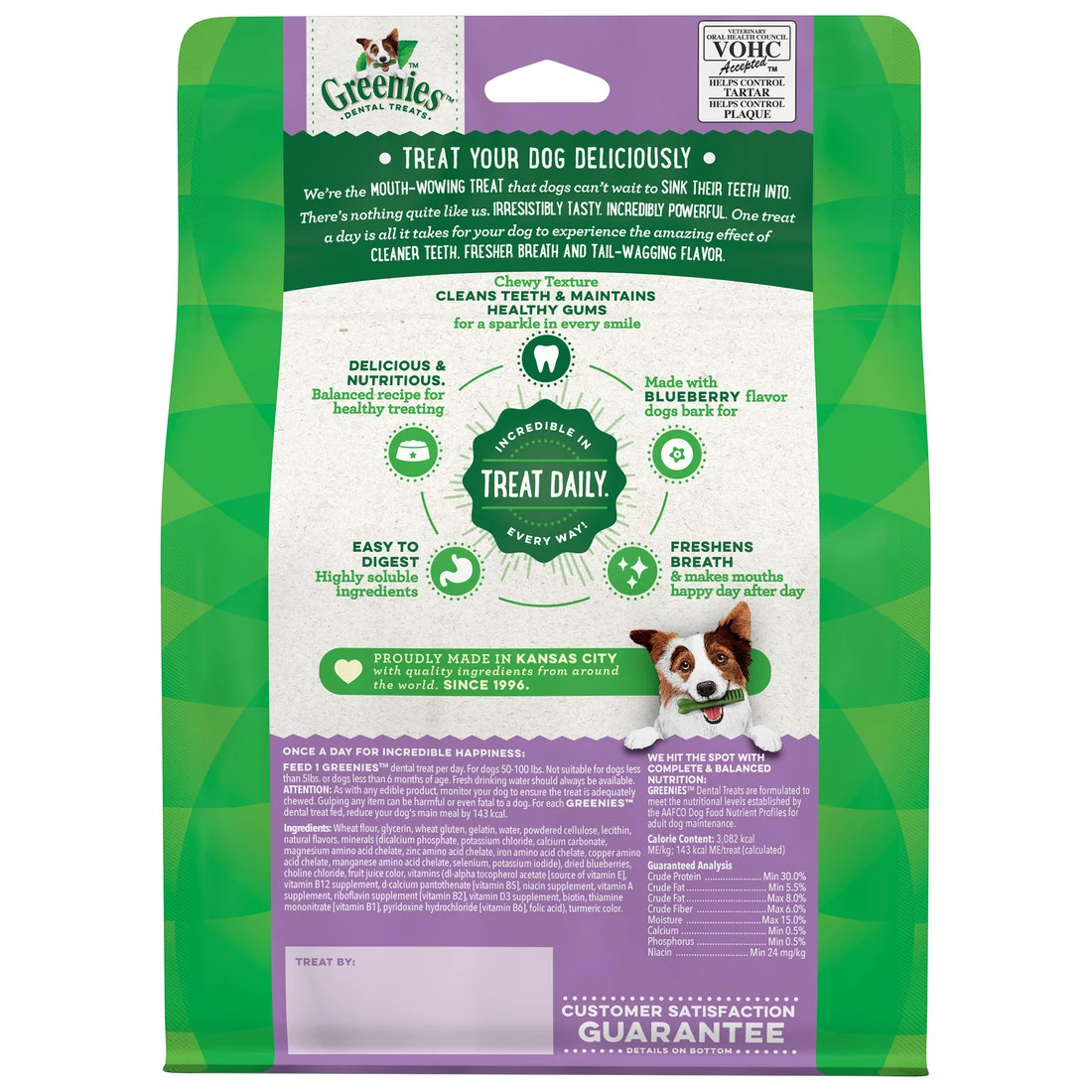 The unique texture of GREENIES Dog Chews cleans down to the gumline to fight plaque and tartar and freshen bad breath. These natural dog treats are packed with blueberry flavor dogs bark for