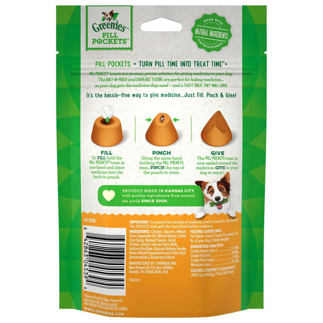 GREENIES Pill Pockets are the tasty, smarter way to help your dogs medicine go downwithout trying to hide pills in human food like messy peanut butter or cheese. These Pill Pockets Dog Treats are a cinch to use: Drop the medicine tablet inside the pocket, pinch it closed, and give your best friend a tasty snack