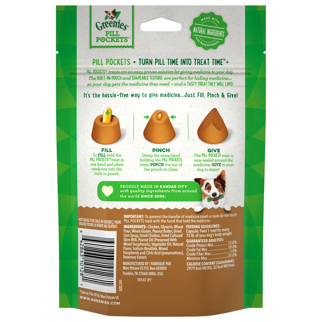 GREENIES Pill Pockets are the tasty, smarter way to help your dogs medicine go downwithout trying to hide pills in human food like messy peanut butter or cheese. These Pill Pockets Dog Treats are a cinch to use: Drop the medicine tablet inside the pocket, pinch it closed, and give your best friend a tasty snack