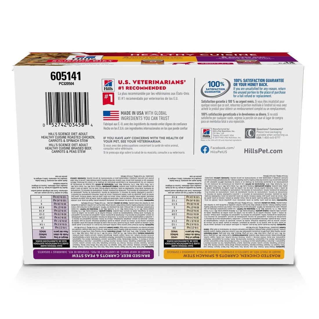 Give your dog the perfect balance of taste and nutrition in two different flavors with this Science Diet Healthy Cuisine variety pack. Combining braised beef or roasted chicken with tender vegetables in a succulent stew, both flavors of this dog food are made in the USA with global ingredients you can trust. Plus, they support lean muscles and a healthy immune system. Open up a can and serve either one of these mouthwatering stews as a balanced meal, or try on top of Science Diet dry dog food. Variety pack of 12 cans in two flavors for adult dogs. High-quality protein for lean muscles. Clinically proven antioxidants for a healthy immune system. The #1 Veterinarian Recommended pet food brand.