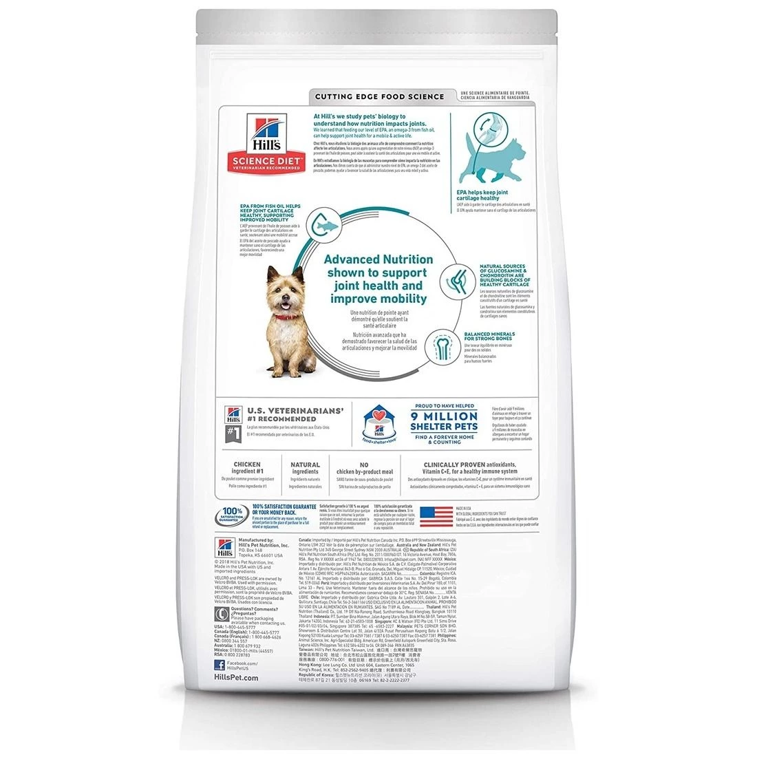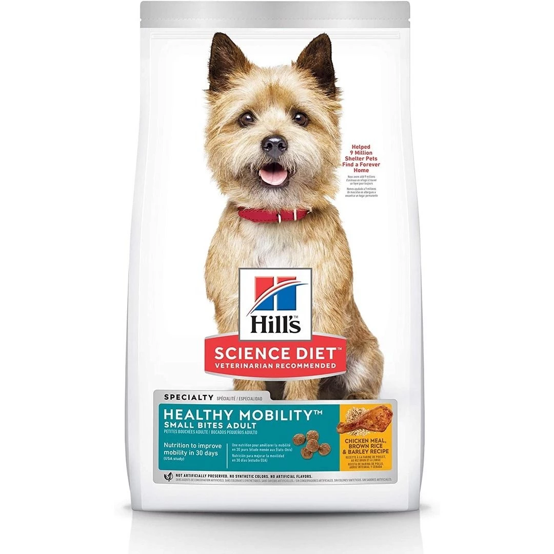 Hill’s Science Diet Healthy Mobility Small Bites dry dog food contains advanced nutrition shown to support joint health and improve mobility in 30 days. EPA from fish oil helps keep joint cartilage healthy, supporting improved mobility. Natural sources of glucosamine & chondroitin are building blocks of healthy cartilage. Balanced minerals for strong bones