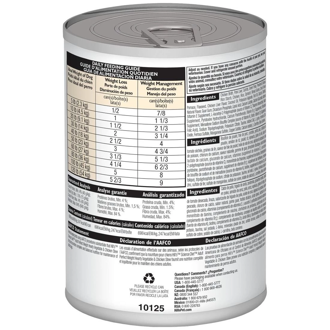 Hill’s Science Diet Adult Perfect Weight Hearty Vegetable & Chicken Stew Canned Dog Food, 10125, 12.5 OZ Can