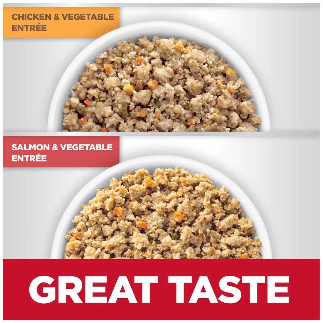 - Variety pack of 12 cans of dog food in two delicious flavors