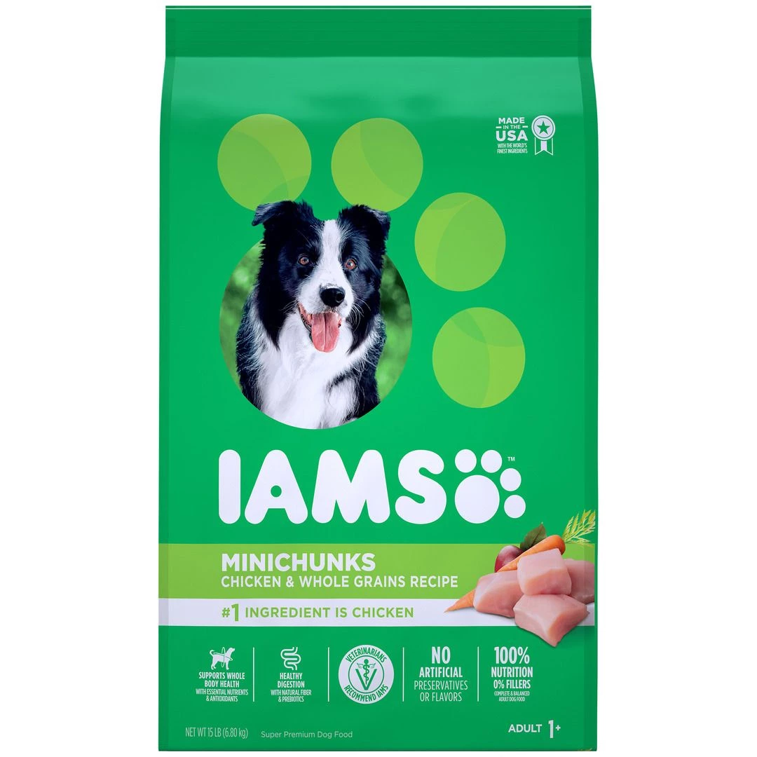 IAMS Adult Minichunks Small Kibble High Protein Dry Dog Food with Real Chicken, 10171566, 15 LB Bag