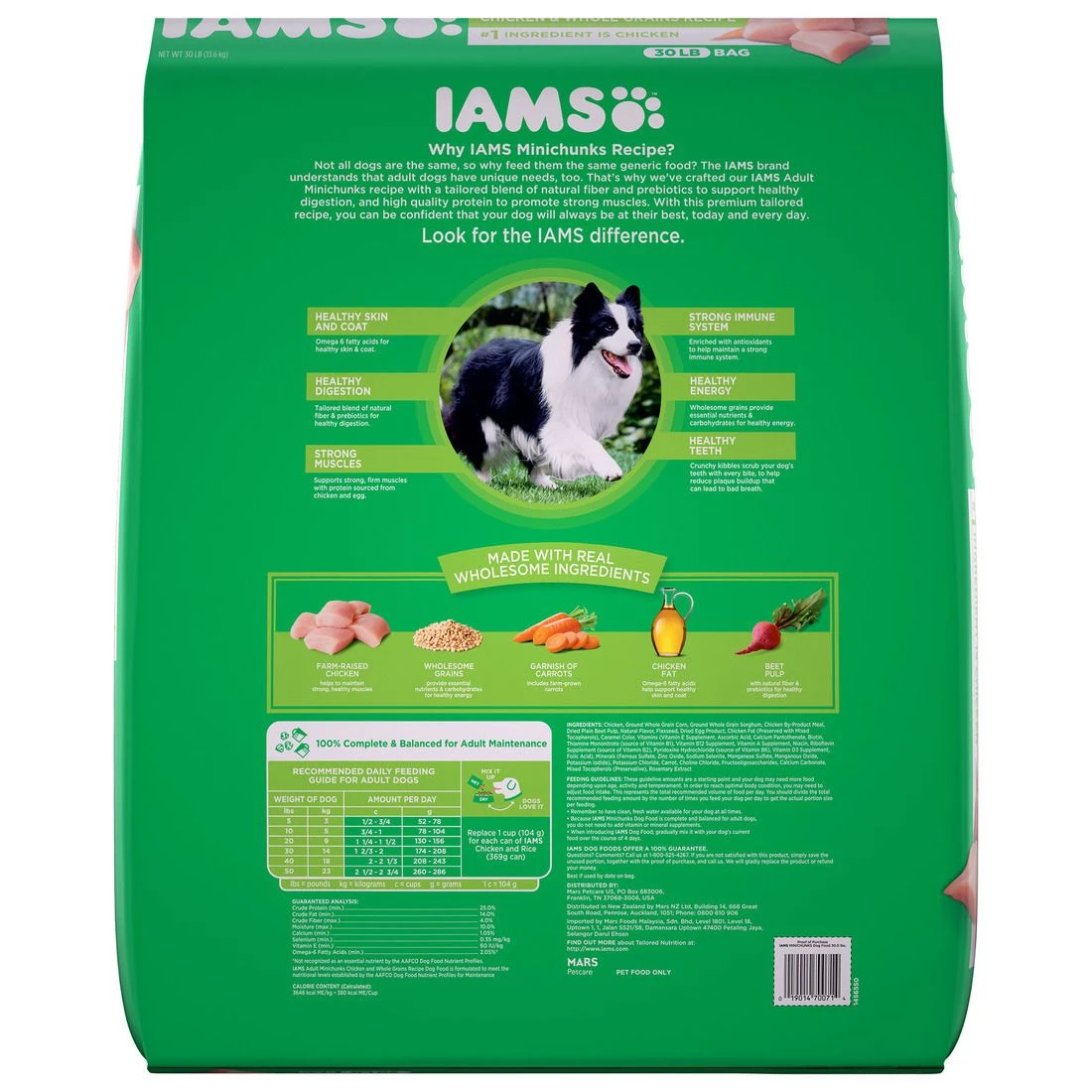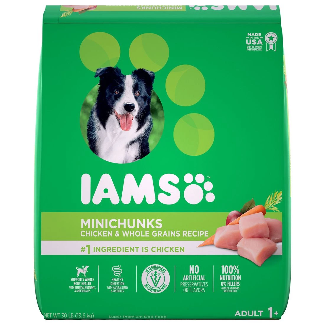 IAMS Adult Minichunks Small Kibble High Protein Dry Dog Food with Real Chicken, 10171567, 30 LB Bag