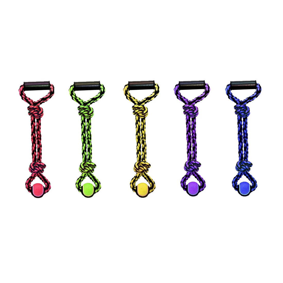 Nuts for Knots Rope Tug with tennis ball is a durable cotton rope designed for active chewers. Durable, tough and interactive this is a perfect toy for fetch, toss, or tug. Assorted, bright colors.