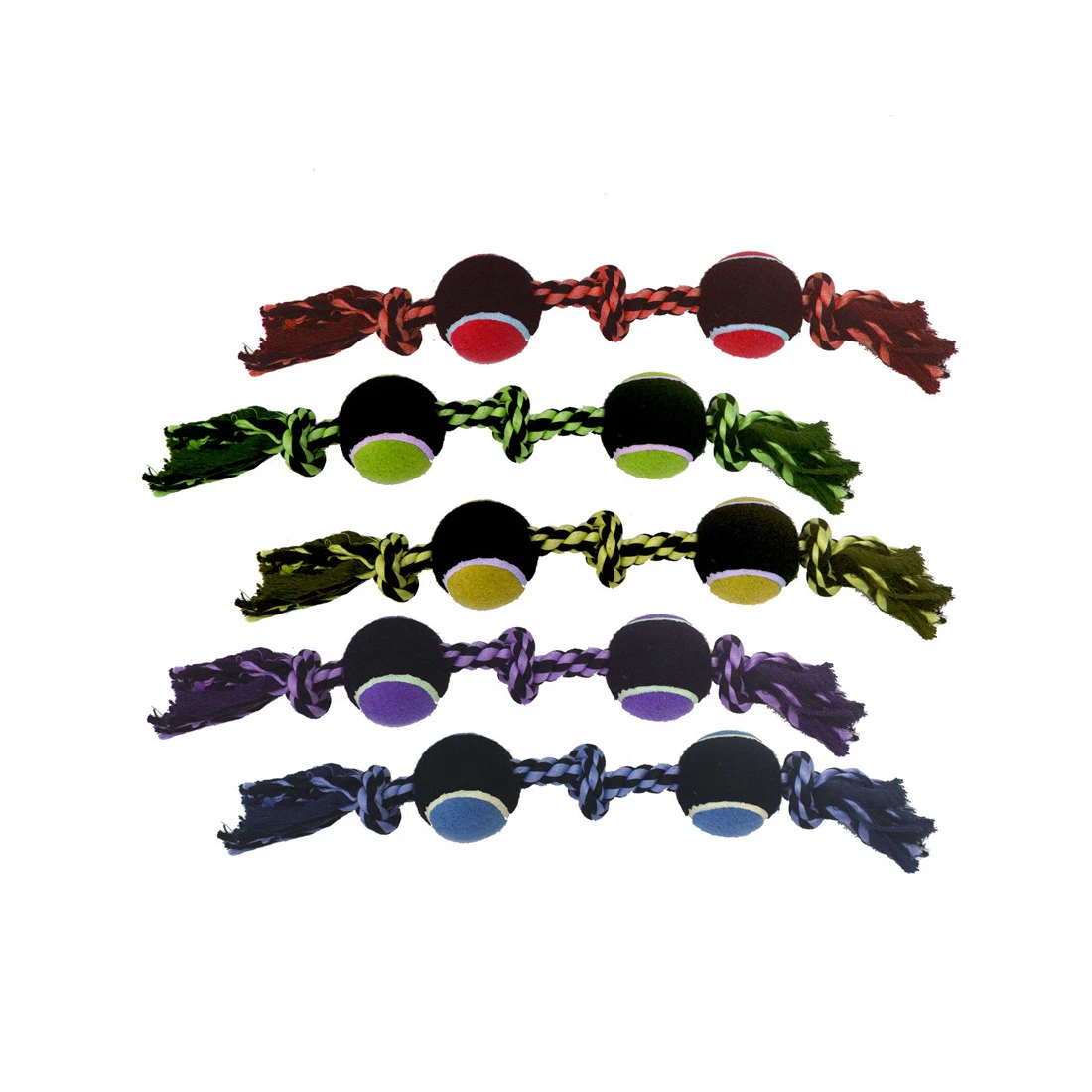 Nuts for Knots 3-Knot Rope Dog Toy with 2 Tennis Balls is great for tough chewers, and will keep your pooch entertained for hours. Durable, tough and interactive. This is a perfect toy for fetch or toss. Assorted, bright colors.