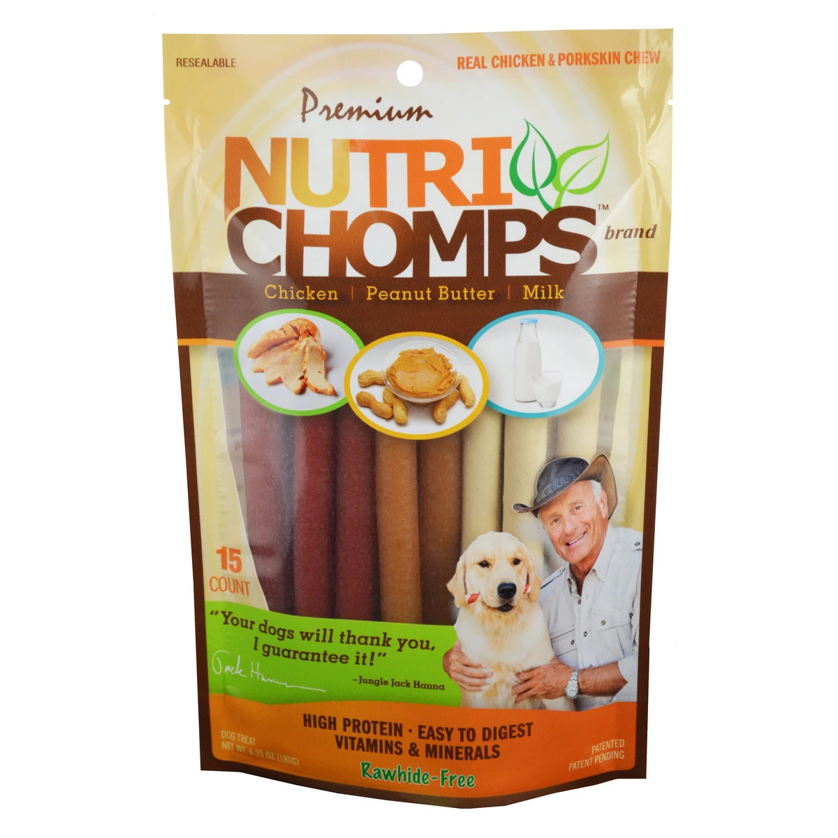 - Nutri Chomps feature real chicken as the very first ingredient and they are made with real pork skin instead of rawhide to promote easy digestion
