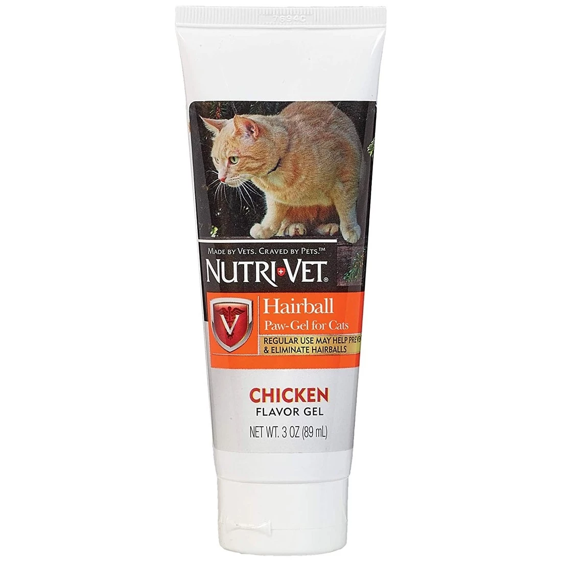As cats groom themselves they ingest hair which can build up and cause hairballs. Nutri-Vet Hairball Paw-Gel for Cats contains natural oils and lubricants that help reduce hairball formation in cats of all ages and promotes healthy skin & coat. Thistasty chicken or salmon flavored gel is petroleum-free with no artificial colors or flavors.