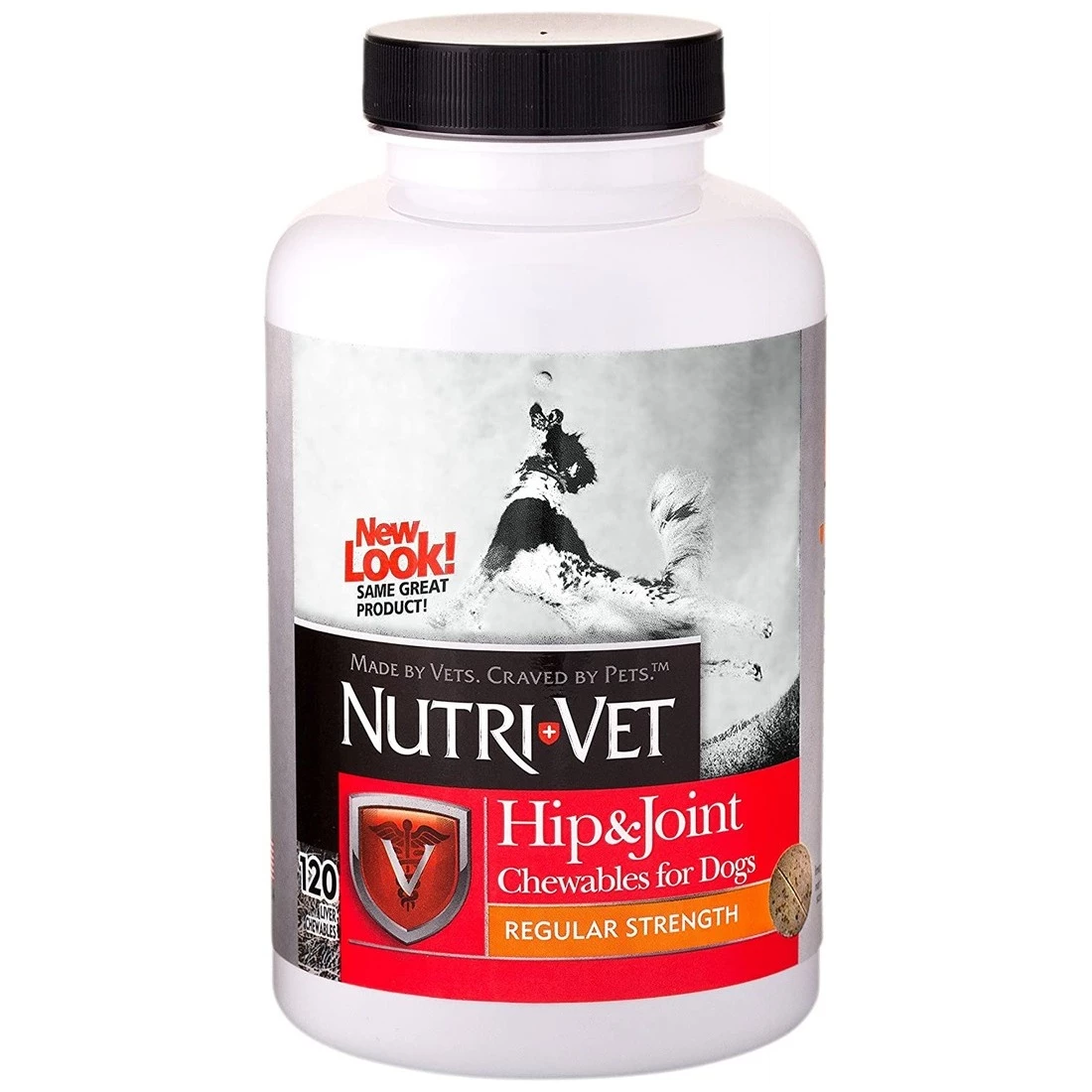 Nutri-Vet Hip & Joint Regular Strength chewables provide balanced levels of glucosamine for dogs, plus chondroitin, vitamin C and methysulfonylmethane (MSM) to help maintain healthy canine joint function and connective tissue. These liver flavor chewables are veterinary-formulated to provide the best joint supplement for dogs.