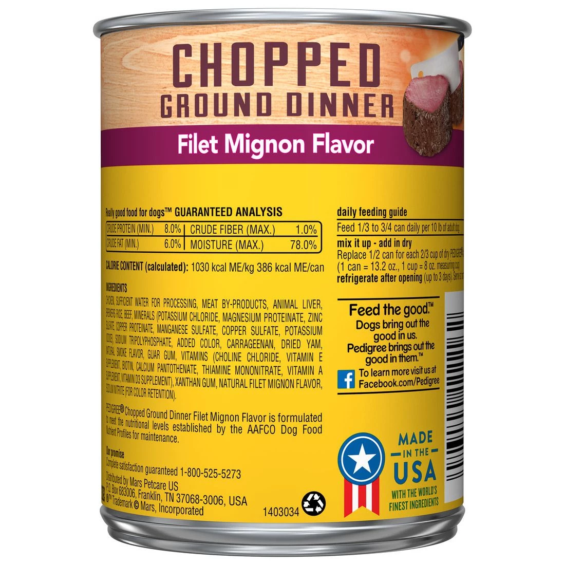 Pedigree Adult Canned Wet Dog Food Chopped Ground Dinner Filet Mignon Flavor, 10177296, 13.2 OZ Can