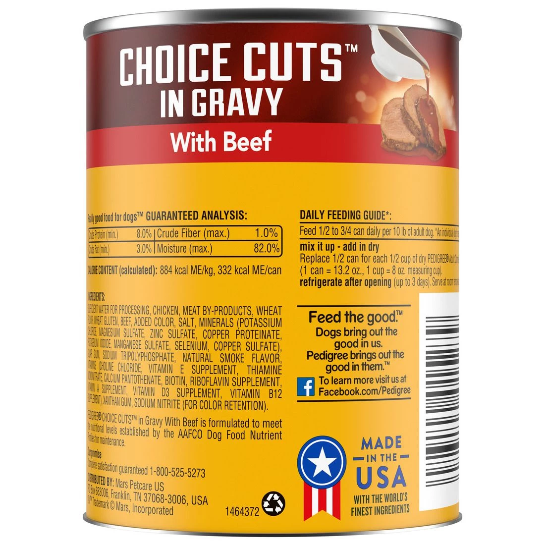 Pedigree CHOICE CUTS in Gravy Adult Canned Wet Dog Food with Beef, 10141821, 13.2 OZ Can