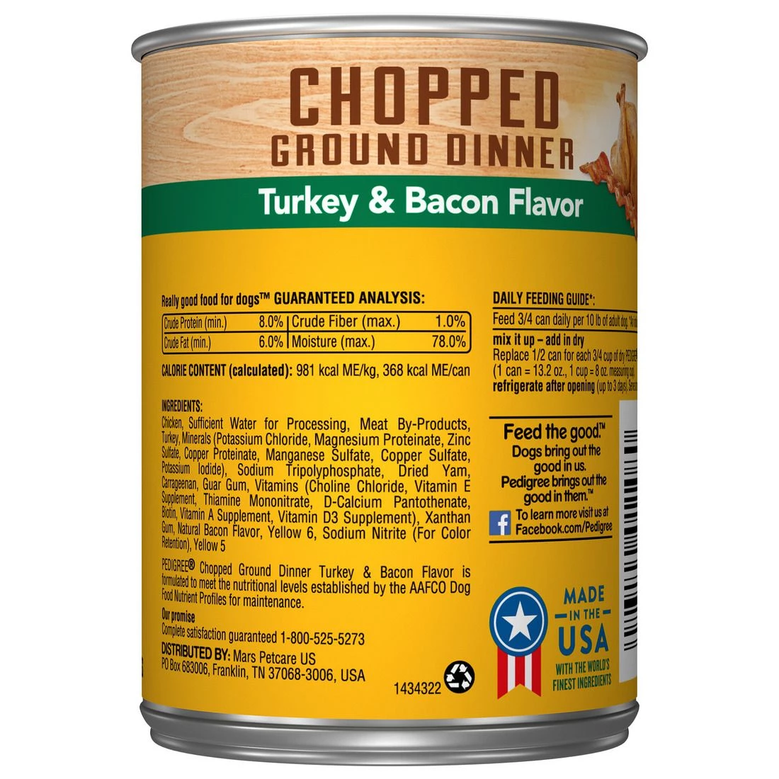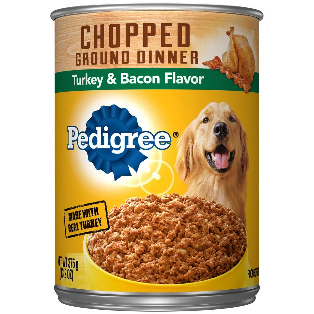 Pedigree Chopped Ground Dinner Adult Canned Soft Wet Dog Food Turkey & Bacon Flavor, 10199516, 13.2 OZ Can