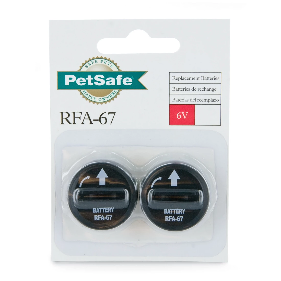 This 2-pack of RFA-67 6 volt replacement batteries works with the PetSafe bark collar, in-ground and wireless fence receiver collar systems. The batteries are waterproof and last 1-3 months, depending on use. PetSafe brand is here to help you and your pet live happy together.