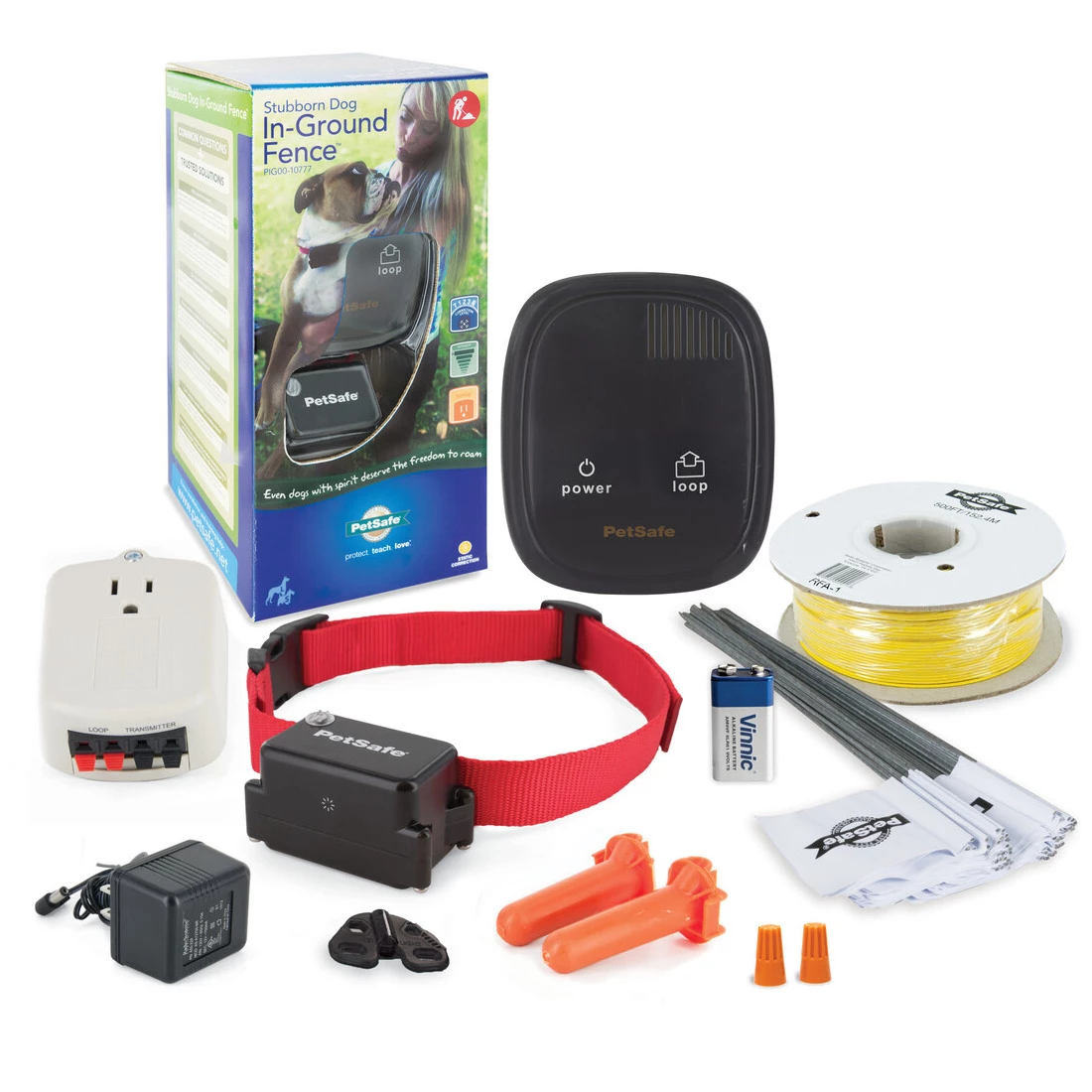 Keep your determined dog safe and secure during outdoor play without worry. The PetSafe Stubborn Dog In-Ground Fence is a do-it-yourself weekend project for most yard shapes and sizes. In this kit you will receive 500 feet of wire to create up to a 1/3-acre area to keep your dog safe and secure. With the purchase of additional wire, you can contain up to a 25-acre yard. This in-ground fence comes with 1 PetSafe Stubborn Dog In-Ground Fence Receiver Collar that fits dogs who weigh 8 pounds or more and adjusts to fit neck sizes between 6-28 inches. The waterproof, battery-operated collar has a tone plus vibration mode and 4 levels of adjustable static correction at a higher intensity correction level for hard-to-train pets. This system includes a unique run-through prevention to help keep your dog from running through their set boundary. If they attempt to run through, the static correction level will increase to encourage your dog to stay inside their safe play space. If you have more than 1 pet at home, simply purchase as many additional compatible receiver collars as you need so all of your pets can use the same system. With just 2 short weeks of training, your best friend will enjoy roaming and exploring their new yard! PetSafe brand is here to help you and your pet live happy together.
