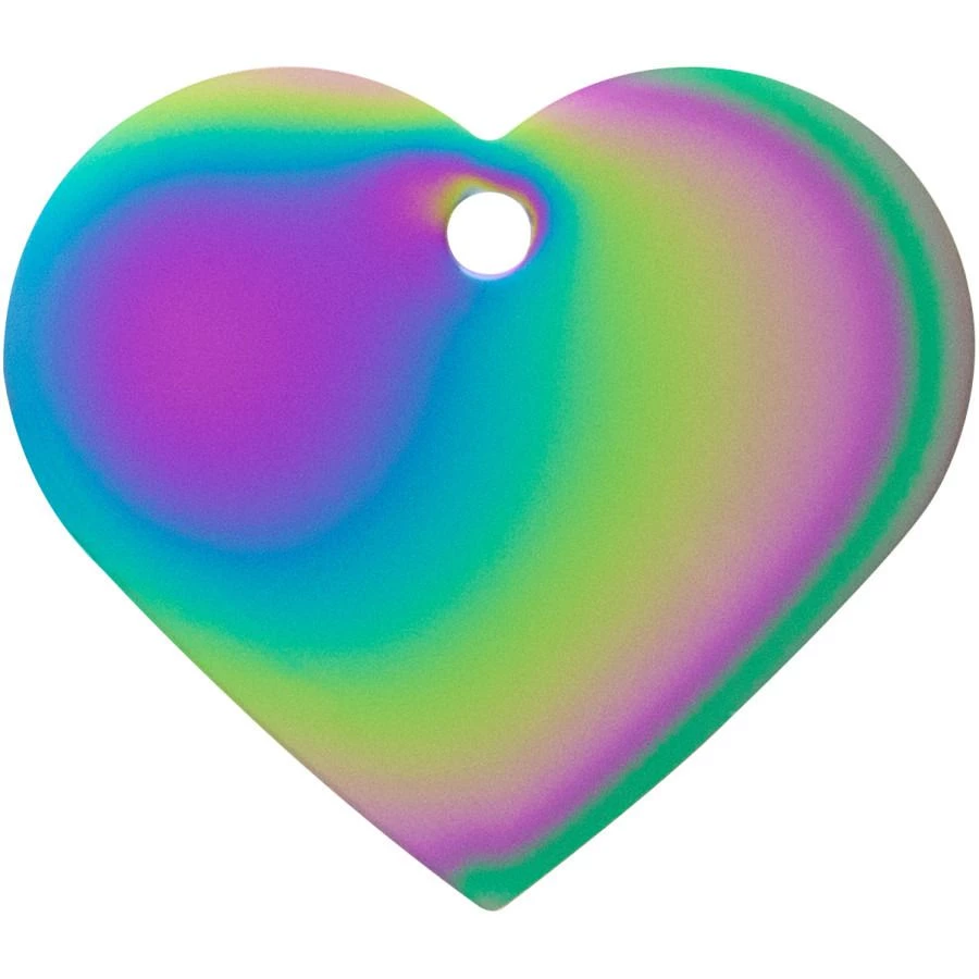 Add some color to your pet with a rainbow large heart Quick-Tag. Personalized tags are a great way to set your pet apart from the Animalia crowd, while showcasing an aspect of their personality. Engraved tags ensure that your pet never gets lost without the information needed for you to be contacted. Tag can be engraved with pets name, home address, and/or phone number (yours, not theirs). Alternatively, inscription can be instructions, a catchphrase, or a custom message.