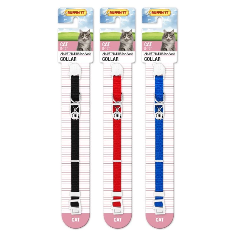 Ruffin’ It Adjustable Collar with Bell and Breakaway Buckle–Black/Red/Blue, 7N39149