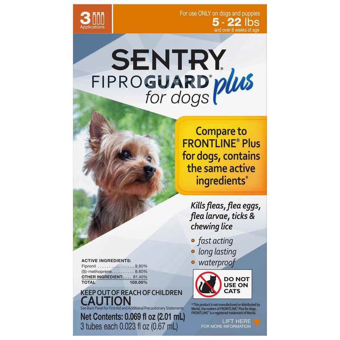 Sentry FiproGuard Plus Dog Flea & Tick Squeeze-On for 4 – 22 LB Dogs, 03424