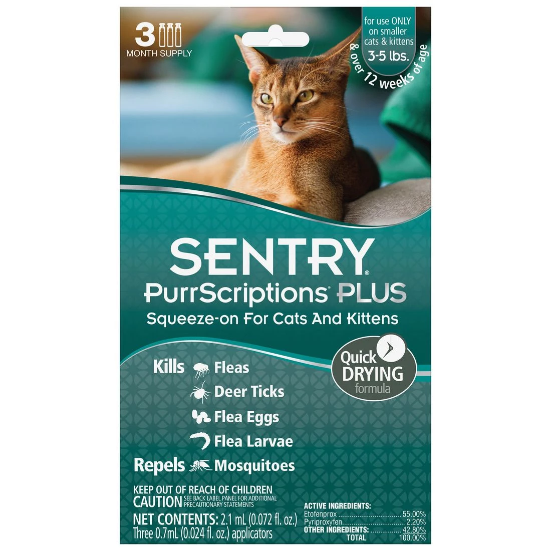 Sentry PurrScriptions Plus Flea & Tick Squeeze-On for Cats Under 5 LB, 01980
