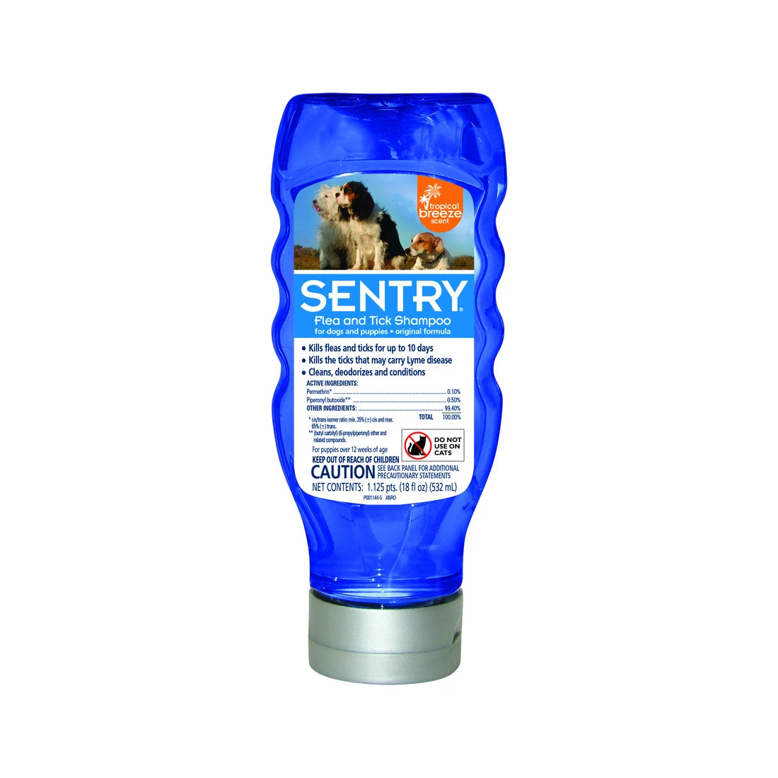 SENTRY Flea and Tick Shampoo for dogs and puppies has a great tropical breeze fragrance and beautiful blue color. This tried-and-true formula kills fleas and ticks for up to ten days. It even kills the ticks that may carry Lyme disease. SENTRY shampoo cleans, deodorizes and conditions your dog’s coat, and is also pH balanced. It can even be used on puppies over 12 weeks of age.