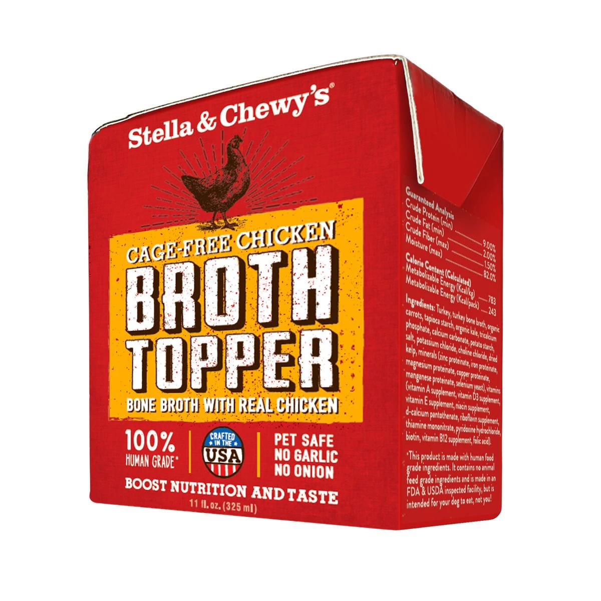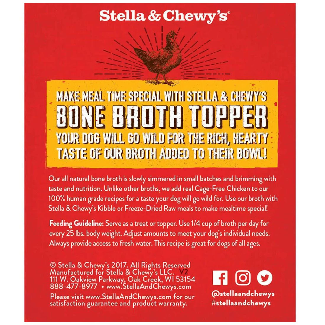 Our all natural bone broth is slowly simmered in small batches and brimming with taste and nutrition. We add real cage-free chicken or grass-fed beef for a taste and topper your dog will go wild for. Serve as a treat or topper to your dogs meal.