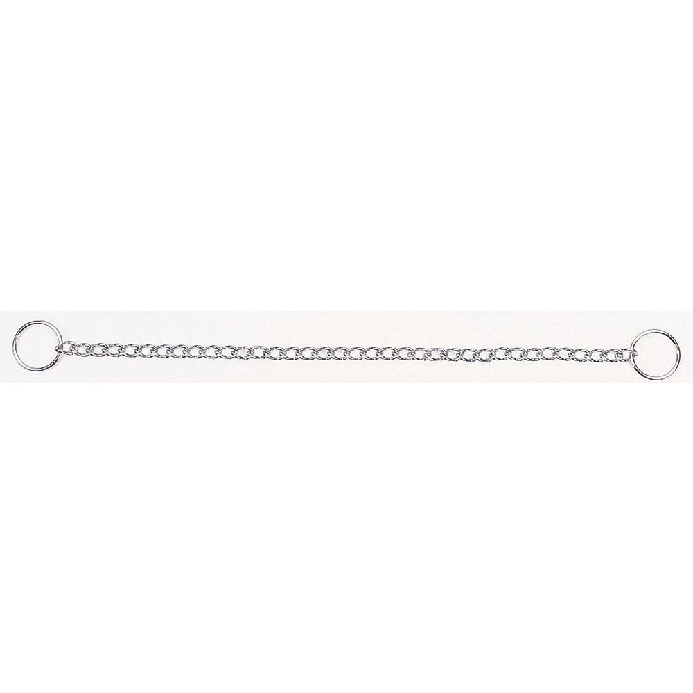 This quality chrome plated chain slip collar is durably constructed for heavy-duty use and fits a variety of dog breeds. Not recommended for tie out; use only under proper supervision. Measures 2.5 mm x 18″.