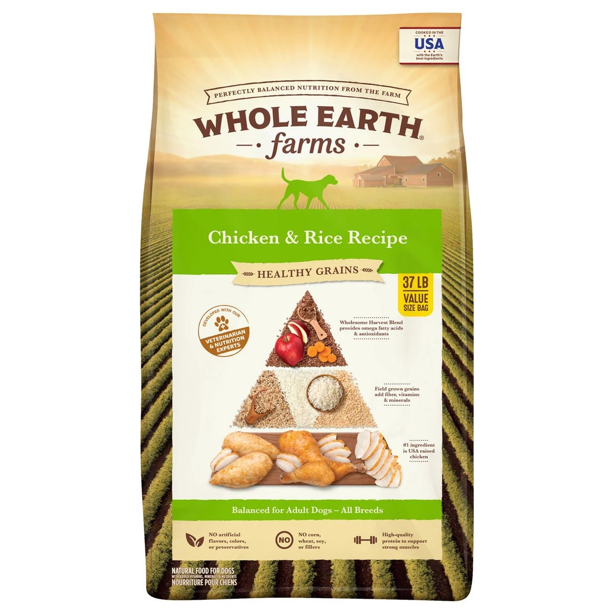 - Whole Earth Farms Healthy Grains Dry Dog Food, Chicken and Rice Recipe