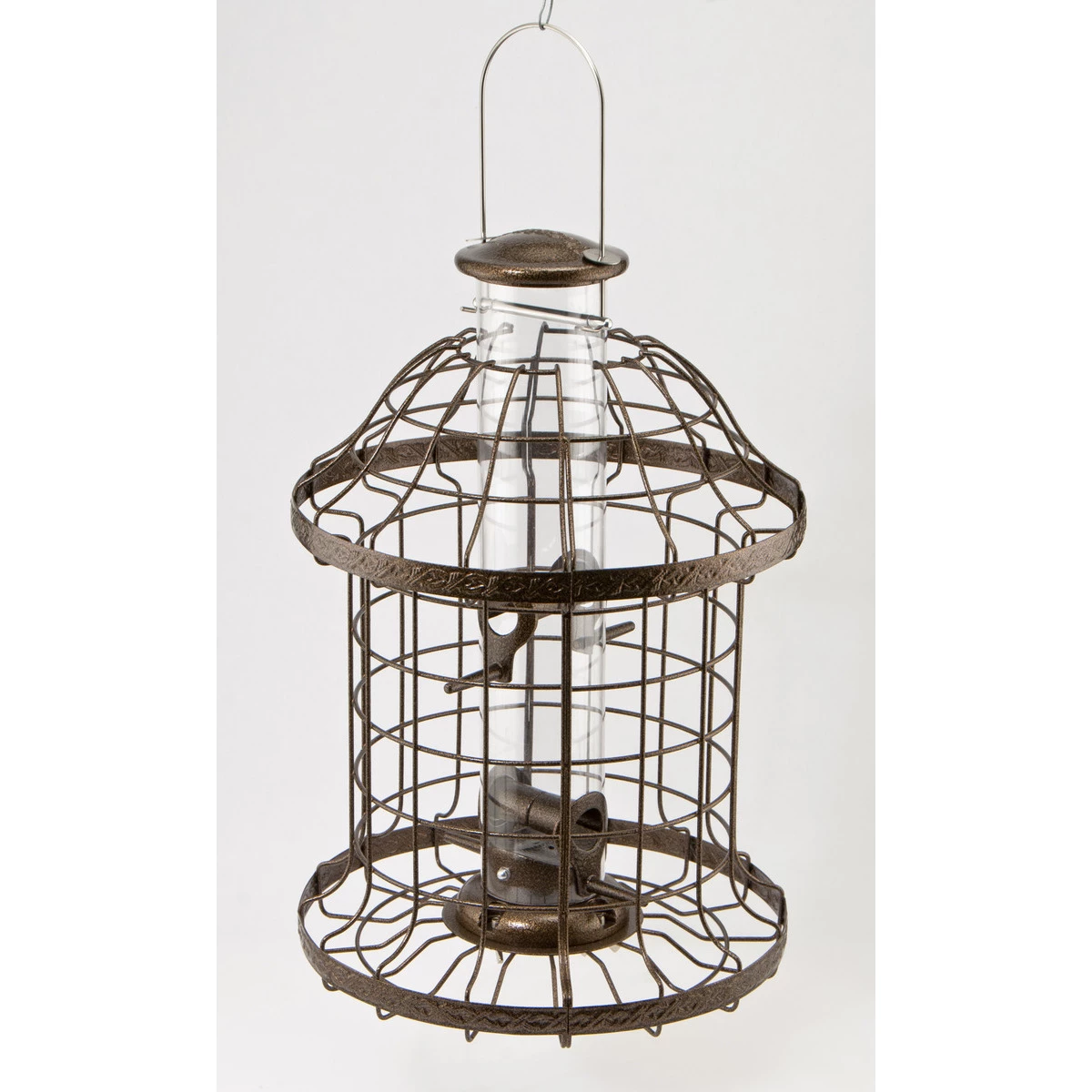 This Woodlink 4-port caged mixed seed feeder features squirrel resistant, powder-coated metal grids making it easy for birds to feed and move around while being protected from predators. Constructed using a die cast steel top and bottom and a polycarbonate tube it comes fully assembled. Hang this feeder 5-1/2 ft. high for easy filling and viewing. Loads of perching room to attract GoldfInch, FInch, Chickadees, Nuthatches, Redpolls, Siskins, Juncos, Titmice and Woodpeckers