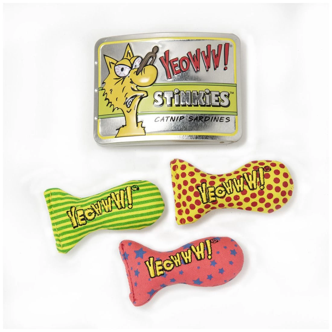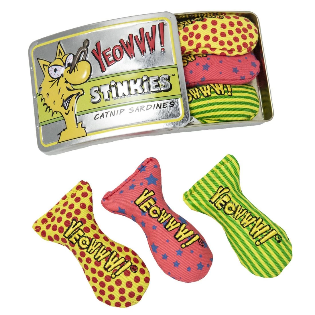 Wonderfully odorous! Each of the 3 colorfully embroidered, eye- catching fishes is a keeper, filled to the gills with Yeowww! Catnip and come in a recyclable, collectible slide top tin full of Yeowww! organically grown catnip