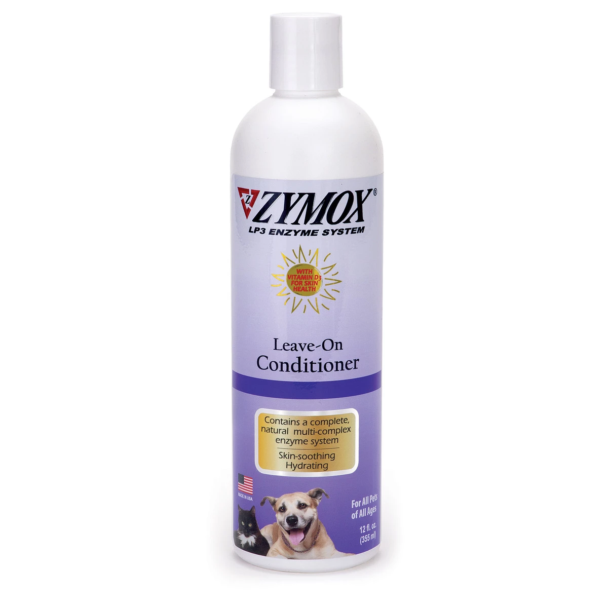 Veterinarian recommended. ZYMOX Leave-On Conditioner provides skin soothing conditioning of the coat and skin formulated with the patented LP3 Enzyme System which blends a combination of protein, enzymes and Vitamin D3. ZYMOX Leave-On Conditioner is safe and gentle for all pets of all ages. Moisturizes and detangles. May be rinsed off, left on or applied full strength to areas needing extra attention. Features a pleasant fragrance. Dries non-greasy. Non-toxic.